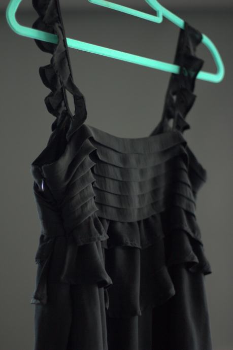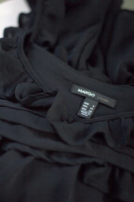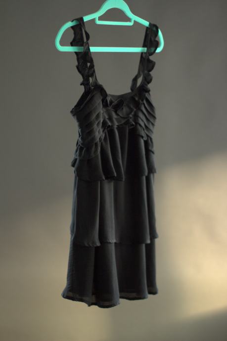 Lijepa mala crna haljina sa volančićima iz Manga veličina S, više odgovara XS. Šlic sa strane. Materijal poliester.