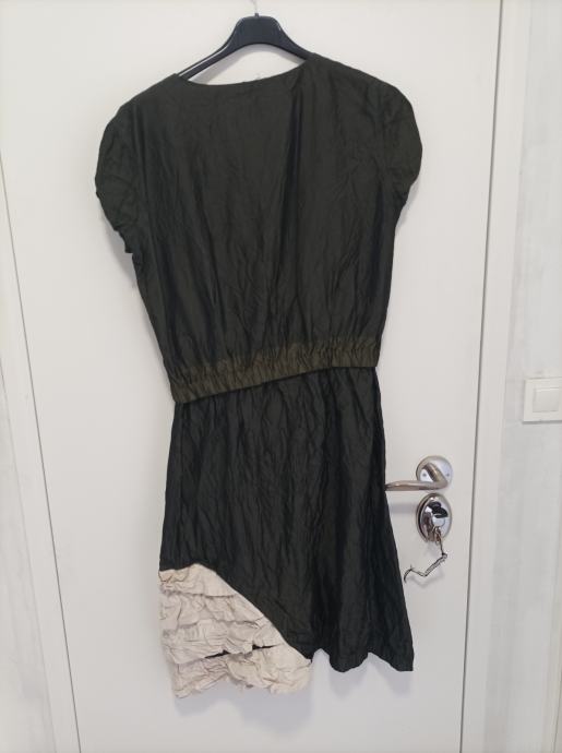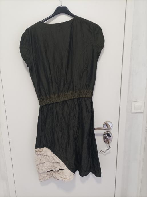 Neobična i posebna maslinasto zelena haljina. Zanimljiv detalj. Ne pegla se. Drugačija od svih ostalih haljina. Vintage stil. Najbolje konfekcijski broj 40.