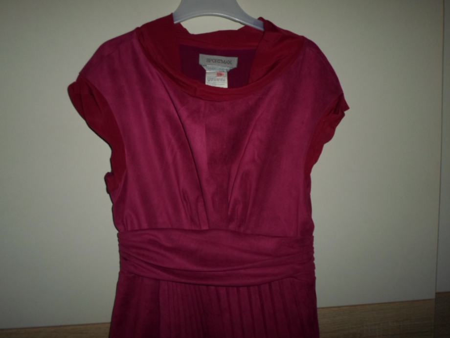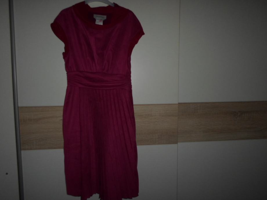 Bočno ima duži skriveni cif. U struku nabrana tako da savršeno skriva nedostatke a dolje sloj još jednog plisiranog materijala koji je prišit na haljinu.