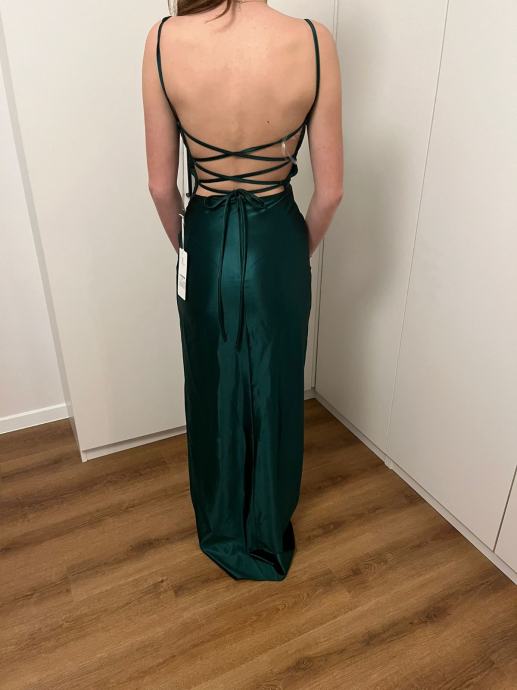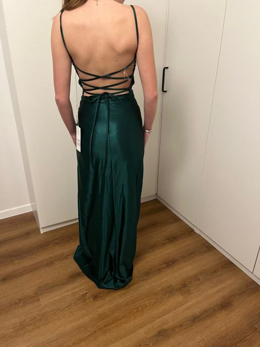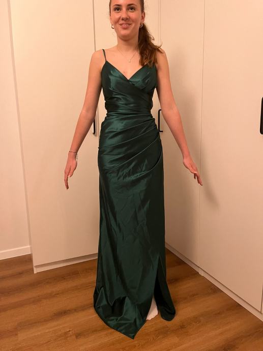 Prodajemo potpuno novu prekrasnu zelenu haljinu,kupljena za krizmu, d8jete se predomislilo. VELICINA 38,rekla bih manji model.Prilazemo račun.