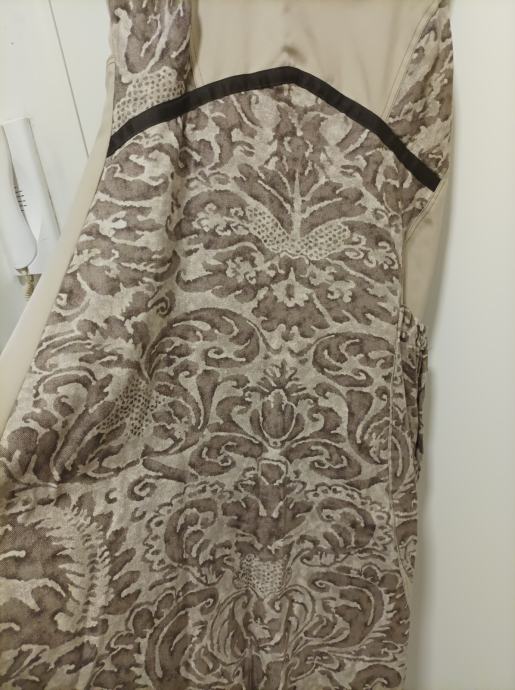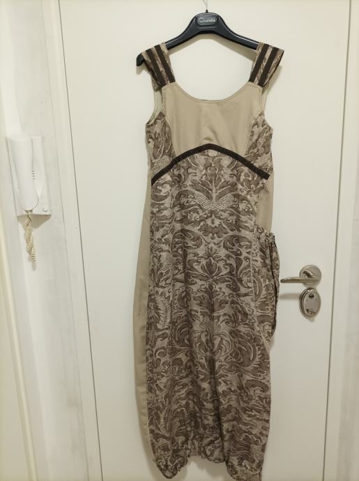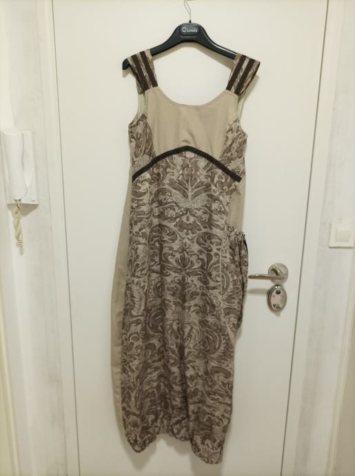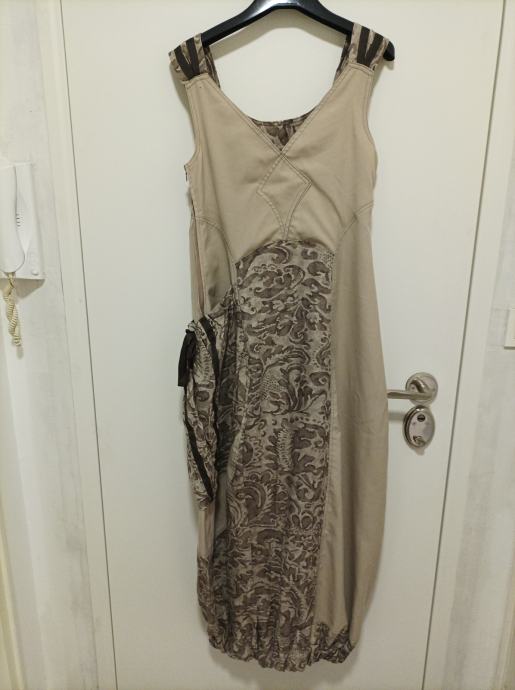 Neobična i zanimljiva haljina. Posebna uz vrlo kvalitetni materijal. Bogata detaljima, a najzanimljiviji je veliki i duboki džep koji se nalazi sa strane. Na dnu je gumica. Kopča se dugim patentom koji se nalazi sa strane.