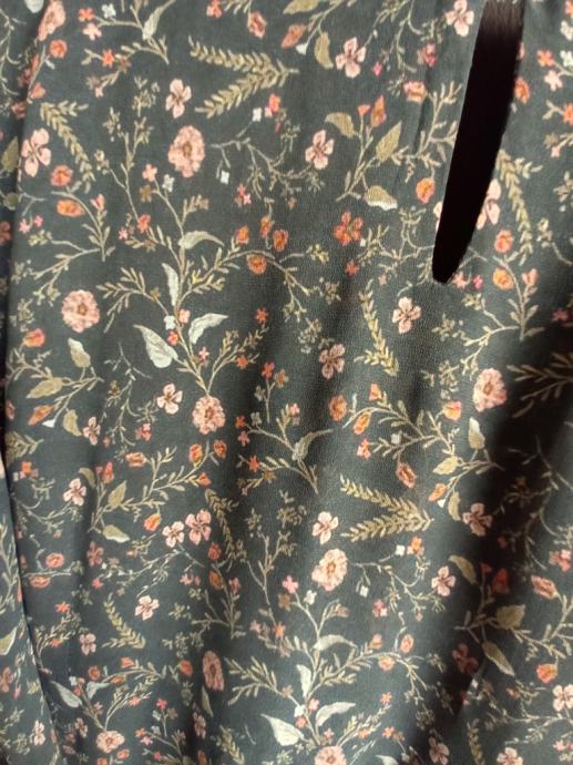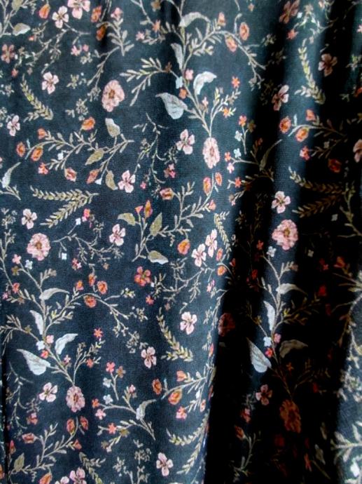 Podloga je tamnozelena s cvjetnim uzorkom.