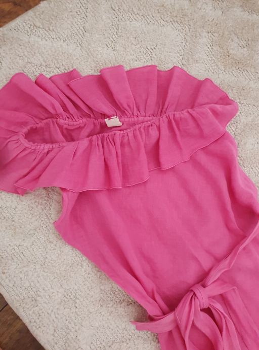 Ima jednu naramenicu i bogati volan. Volan je na elastičnoj pasici.