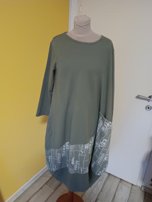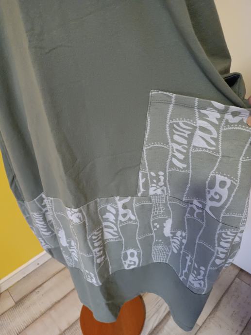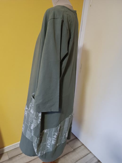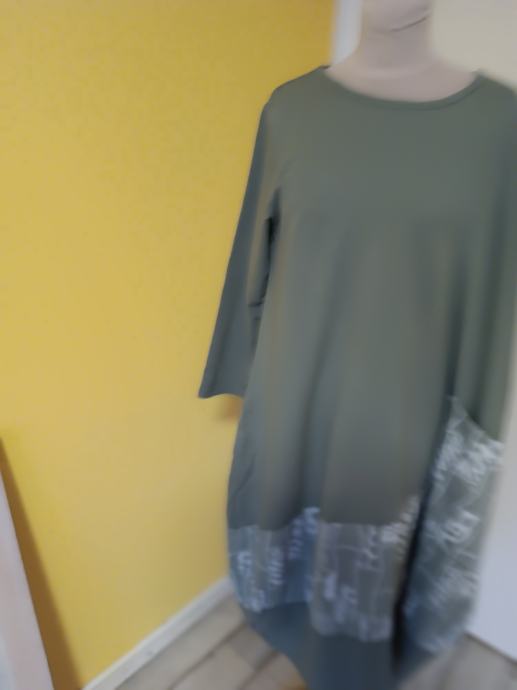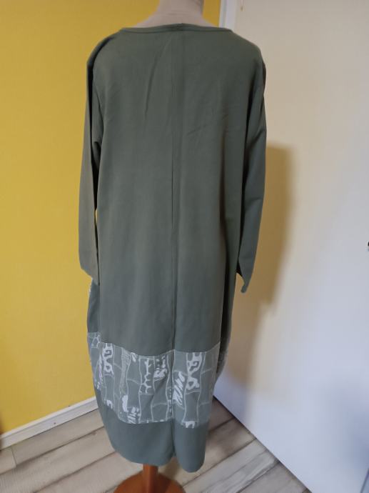 Nova, s etiketom svjetlozelena haljina s 3/4 rukavima. Kroj je opušten, balon. Jednostavnoga kroja.