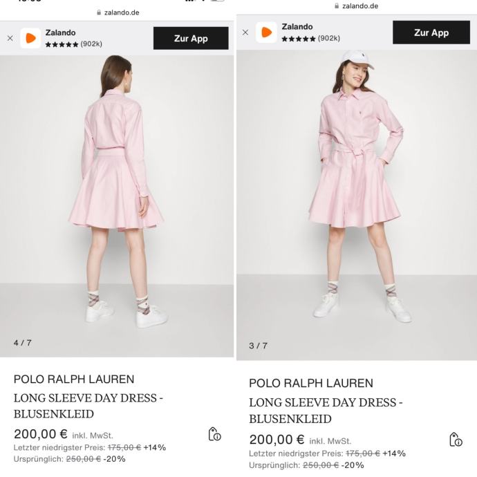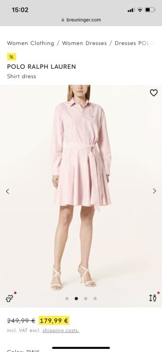 Na fotografijama je vidljivo i kako stoji (napomena: model haljine iz oglasa je originalno bez remena/pojasa, a ušiveni znak konjića je iste boje kao i cijela haljina).