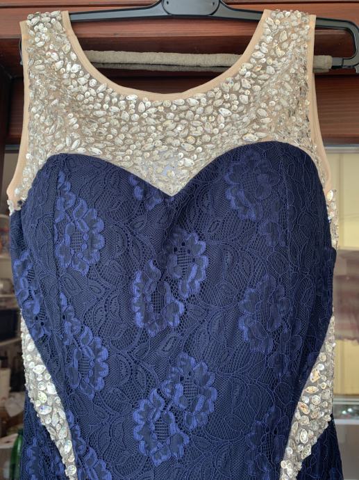 Prodajem predivnu modru jednom nosenu kemijski ociscenu haljinu kupljenu u La Perle Split za vjencanje, s perlama koje su u potpunosti sacuvane i neostecene - sto se vidi na slikama. Ima podstavu iste boje kao i sama cipka; materijal poliamid i elastin - jako dobra na kozi, materijal ne uzrokuje znojenje, rastezljiva i prilagodi se tijelu. U cijenu nije ukljucen grudnjak koji je na slici. Placena 1500 kn. Moguce slanje Tiskom ili osobno preuzimanje u Splitu. Molim kontakt porukom.