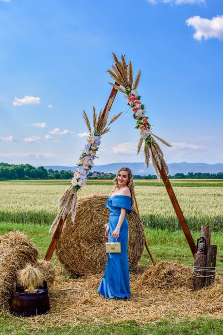 Prodajem svečanu haljinu, šivanu po mjeri, saten-svila, nošena jednom prilikom za kumstvo. Uz haljinu ide i plašt/pokrivalo za crkvu od istog materijala.