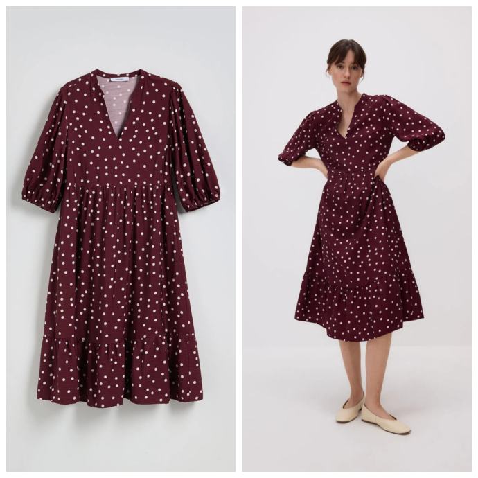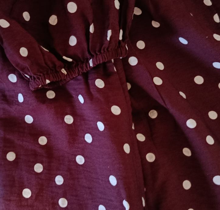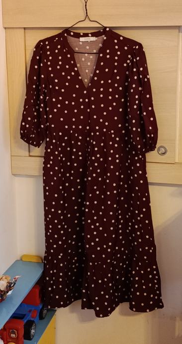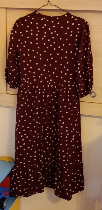 Midi haljina s visokim udjelom viskoze u tamnocrvenoj (maroon/bordo) boji s bijelim točkicama.