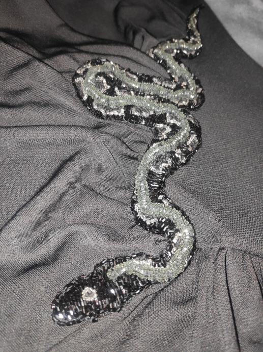 Ima apliciranu 3D zmiju od sjajnih kristala.