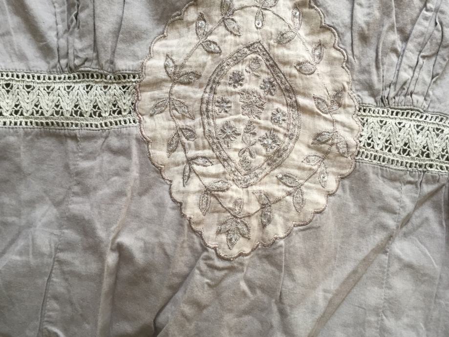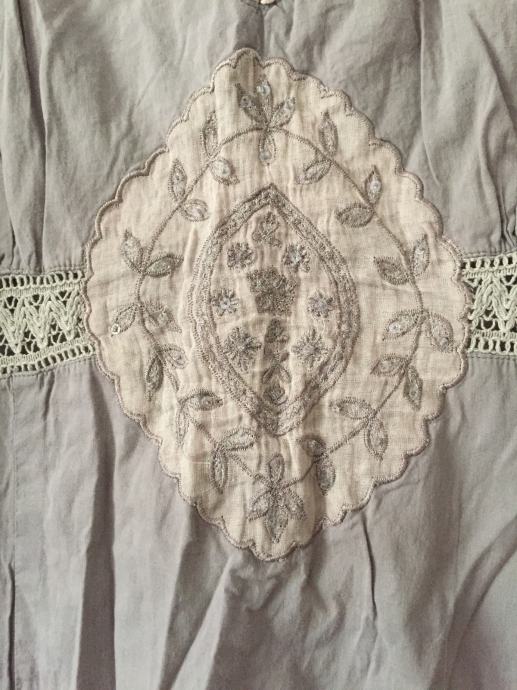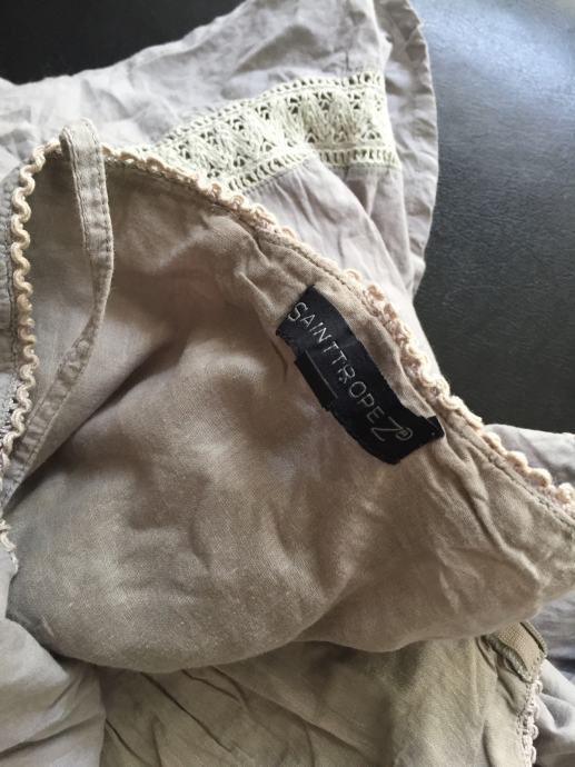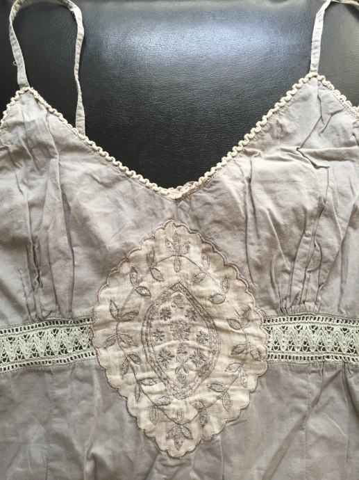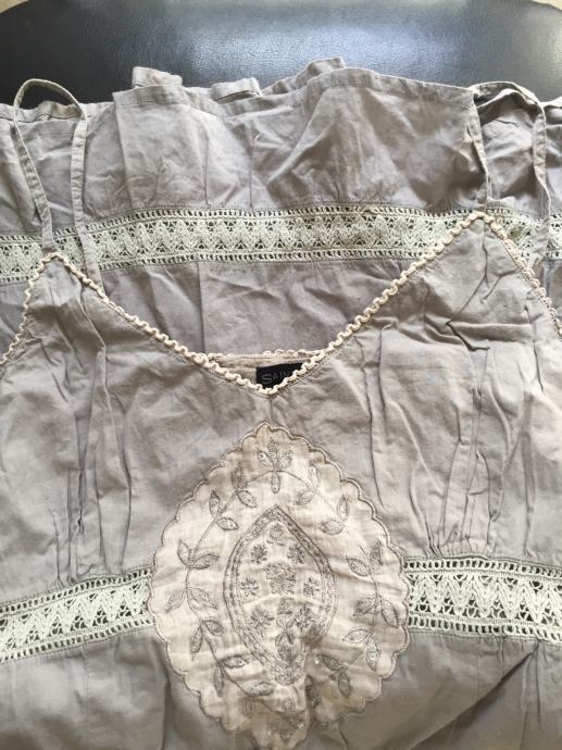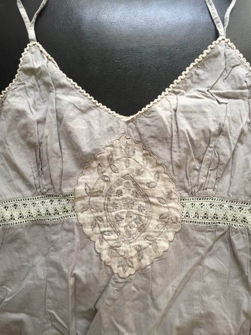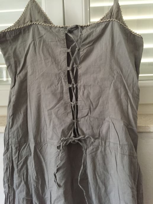 SAINTTROPEZ slip siva haljina na volan sa čipkom..i izvezenom splikacijom sa perlicama...podstavljena..otraga na vezicu poput bustier korzeta..M/L/XL...dekl.XL...pamuk..kao nova!