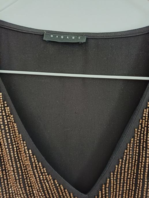 Sisley koktel haljina, crna sa kontrastnim šljokicama.