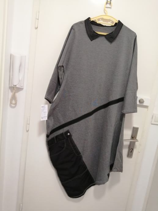 Nova dizajnirana siva haljina kupljena za 1200 u butiku u Vlaškoj ulici, Zagreb. Haljina je fora. Zanimljiv ovratnik. Donji dio neobičan. Posebna i nosiva svaki dan. Prodajem za 780 kuna. Lijepo oblači.