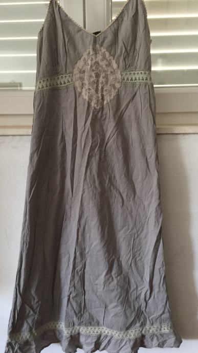 SLIP haljina pastelno siva na volan sa aplikacijom od čipke..pamuk...na bretele..podstava...M/L..vrlo očuvana!