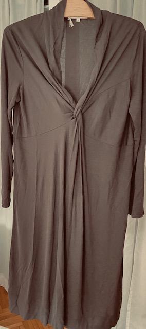 crna ili smeđa boja, fina i ugodna haljina, dugih rukava, pametnog kroja, mekana, lagana za održavanje, 100% viskoza, ispod koljena, vel 42-44 i 46 ( ako želiteda vam bude pripijena). Krojena je za žene koje imaju i guzu i grudi- a ništa ne zateže tj “ puca po šavu” lol..