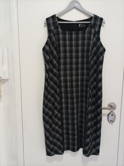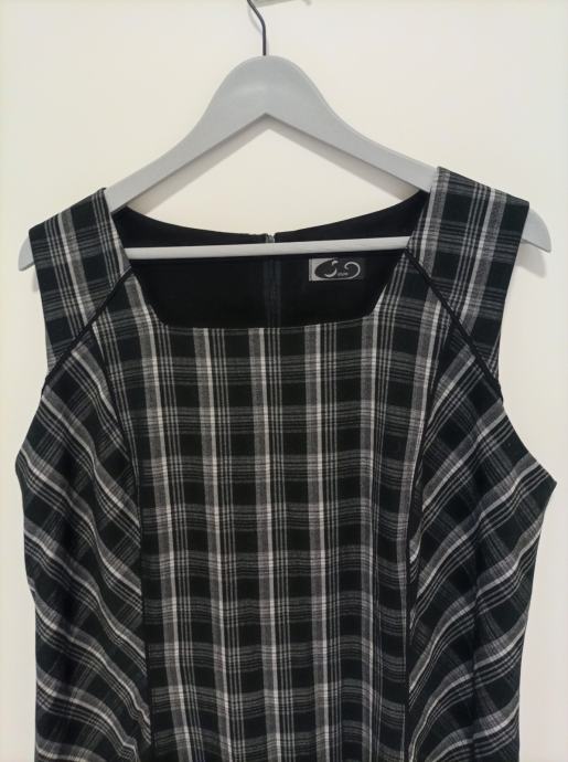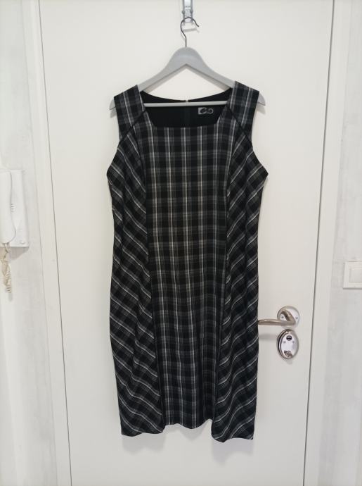 Kao nova, haljina modne kuće Srnec. Vrlo kvalitetna, ne gužva se. Uzdužni kvadratići skrivaju sve nedostatke. Konfekcijski broj 46.