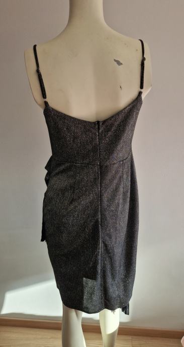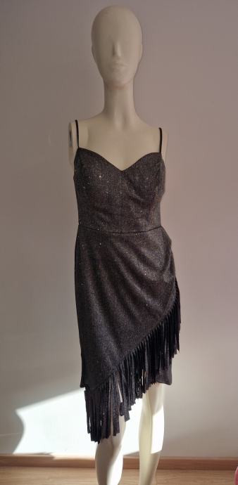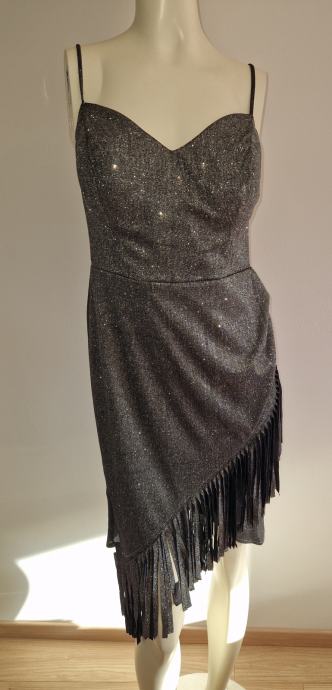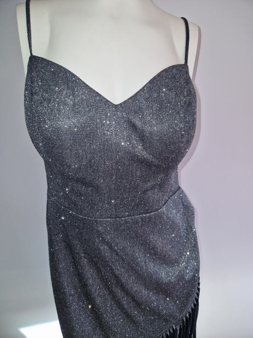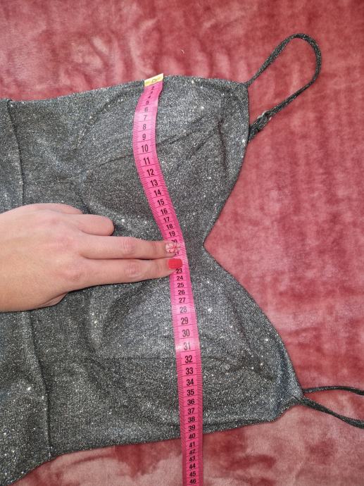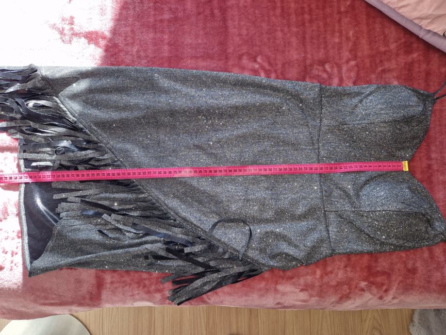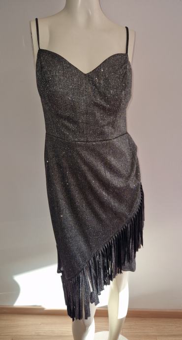 Svečana nova cijela šljokičava haljina s resama, na bretele. Piše veličina 40, ali nisam baš sigurna, pa sam slikala mjere.