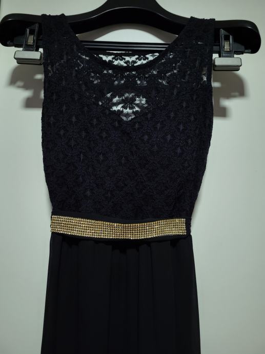 Nošena dva puta. Haljina je vrlo lagana i prozračna. U odličnom stanju bez oštećenja. Haljina se iza veže s pojasom te s njime možete istaknuti struk. Dosta je elastičan gornji dio i podstava tako da i to uzmite u obzir. Podstava je do koljena, a preko podstave pada til.