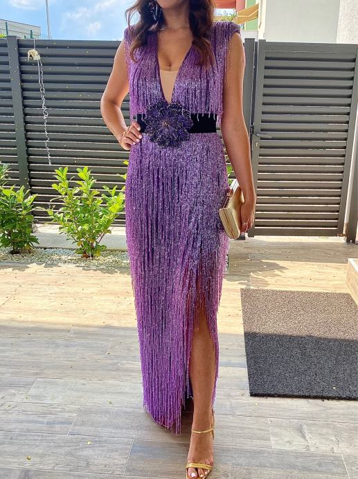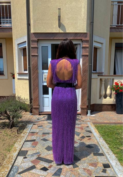 Idealna za vjenčanu kumu ili maturalnu večer. Haljina je veličina 36, nošena na potpetice od 10 cm, moja visina je 169 cm.