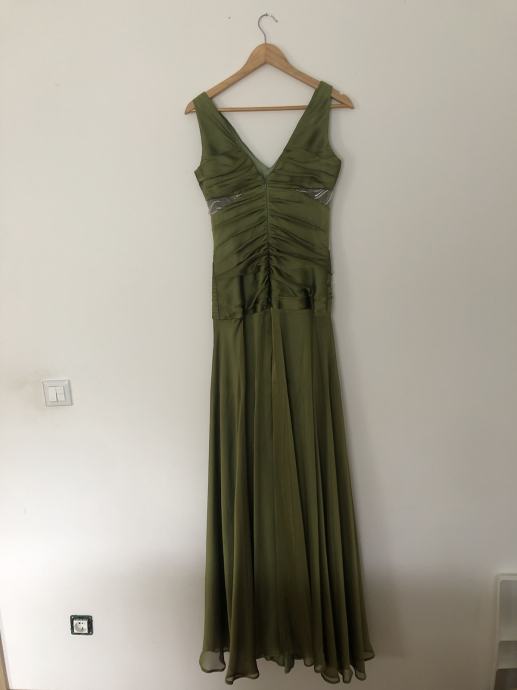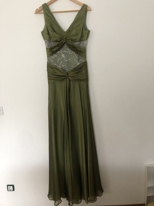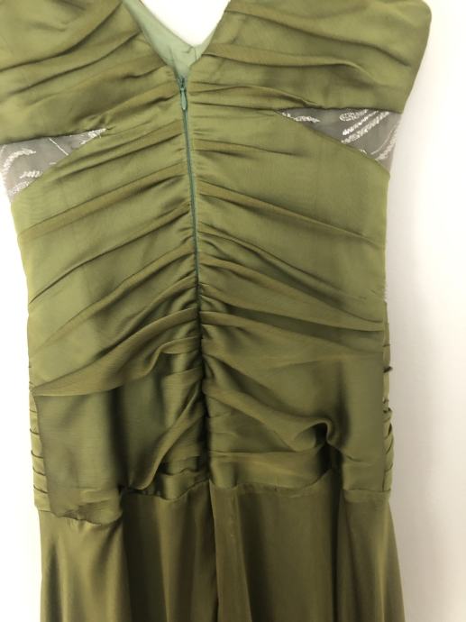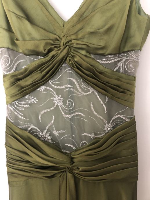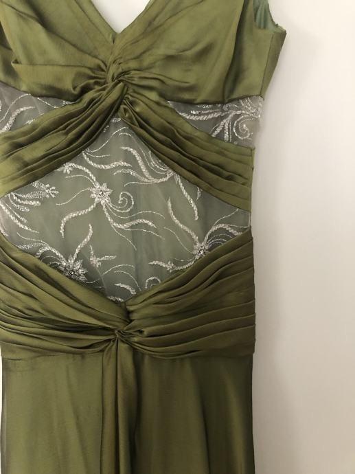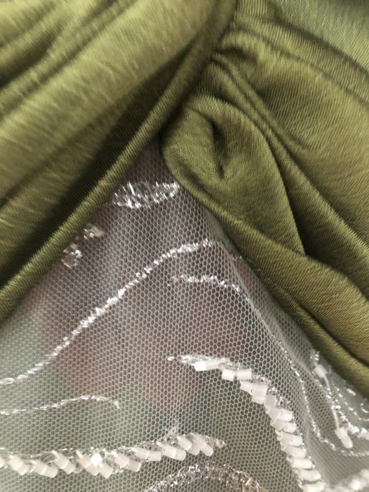 Svečana haljina lijepe svijetlo zelene boje, kombinacija šantunga i čipke, za maturalnu zabavu, vjenčanja i slične prigode.