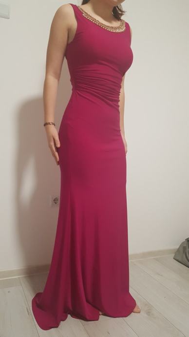 Prodajem haljinu boja ciklame, za velicinu 38/S, ali je materijal zahvalan, rastezljiv i prijanja uz tijelo tako da moze biti i broj veci. Nosena samo jednom, kupljena u Zagrebu importane centar, u trgovini Giovanni za 80€.