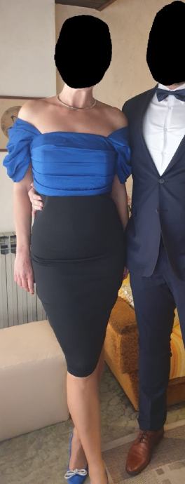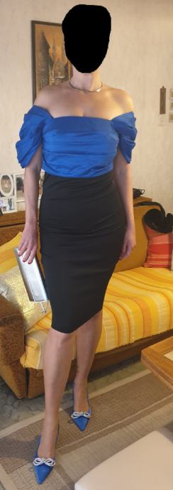 Materijali su jako kvalitetni, posebno plavi gornji dio - taft kojeg možete nositi malo napuhanijeg na ramenima, ili na samom rubu ramena ili ovako spušteno na slici kako sam ja nosila, dok crni, donji dio prijanja uz tijelo, nije puno elastičan, svega nekoliko posto.