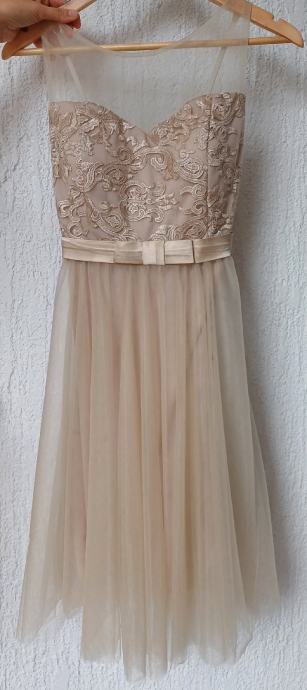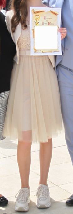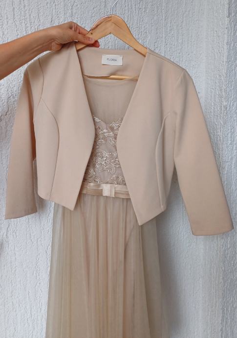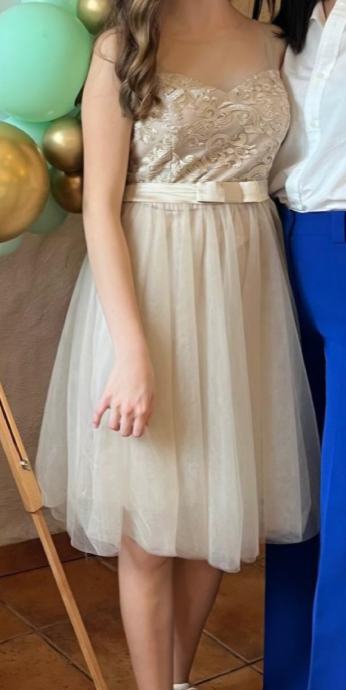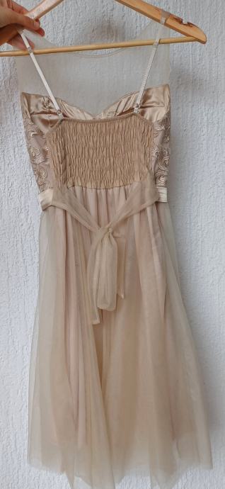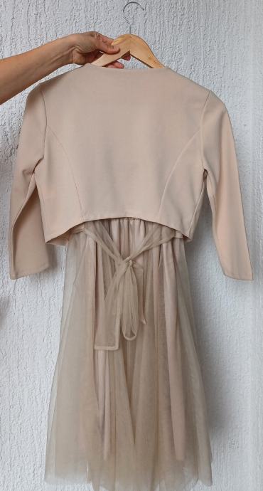 Prodajem svečanu haljinu veličina 34 ( cca. 13-14 godina). Uz haljinu ide i prsluk. Nošeno samo jednom.