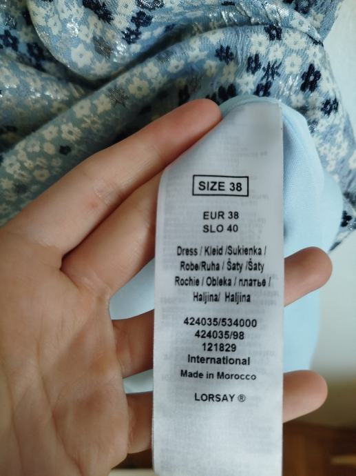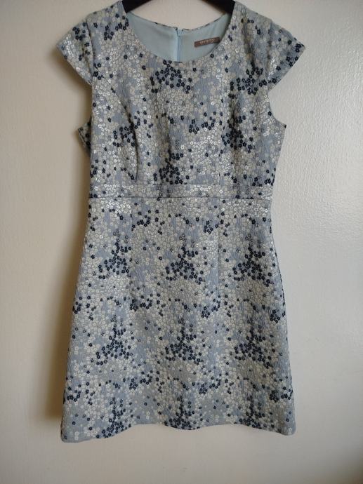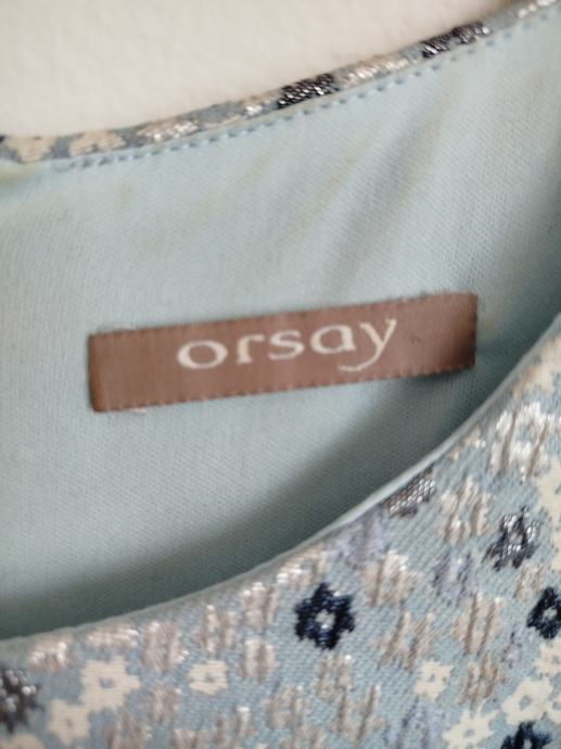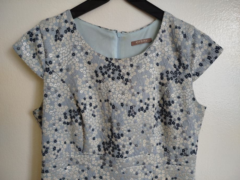 Orsay haljina nošena jednom u svatove. Na zadnjoj fotografiji vidljivo kako stoji. Bez oštećenja. Veličina M/ 38. Boja plavo-bijelo-srebrna. Haljina ima postavu cijelom dužinom.
