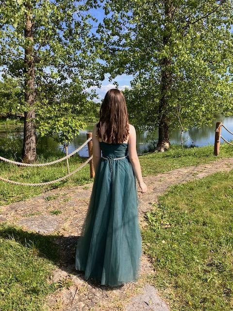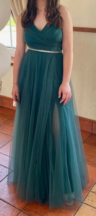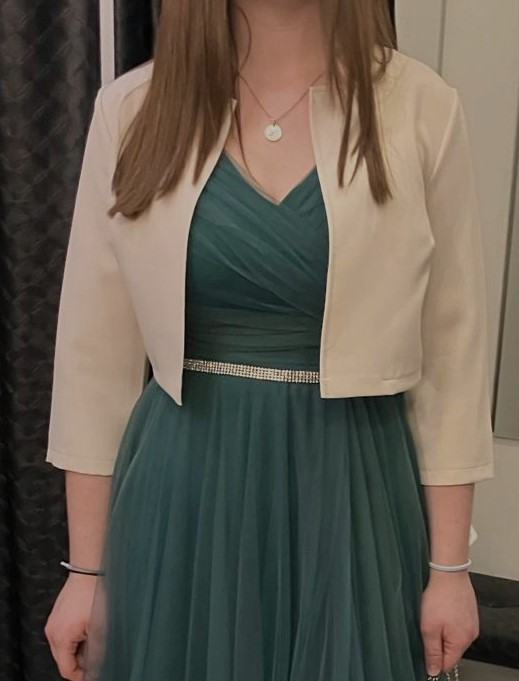 Prodaje se svečana haljina uz dodatke(remen i bolero). Nošena je samo jednom(prilikom krizme). Očuvana je i nema oštećenja.