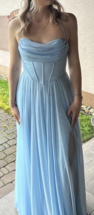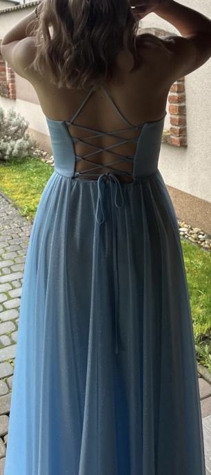 Prodajem elegantnu plavu svečanu haljinu veličine 36, malo nošenu i u odličnom stanju. Haljina je bez rukava, s drapiranim gornjim dijelom i seže ispod koljena. Savršena za posebne prilike poput vjenčanja ili maturalnih zabava. Plaćena 170€