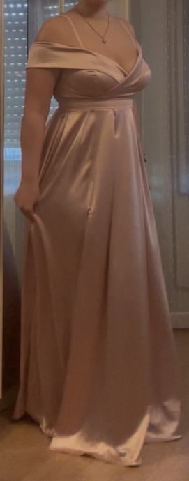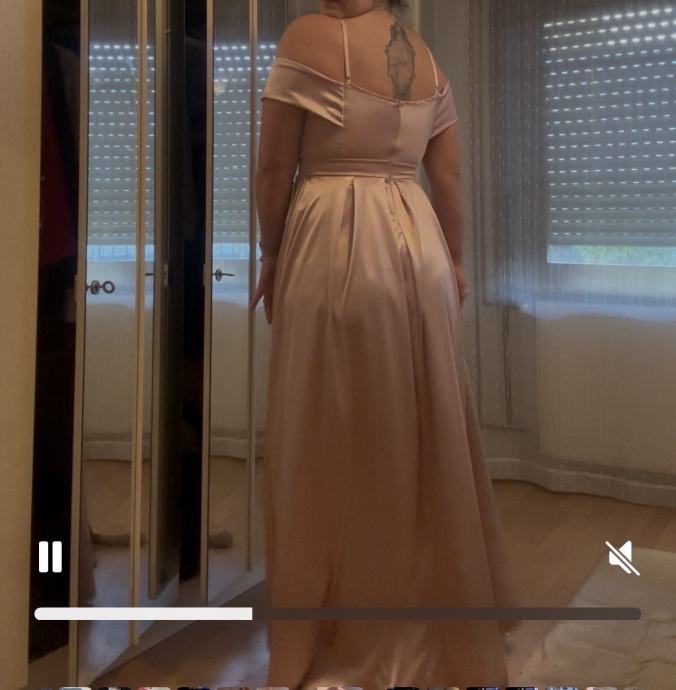 Nošena samo jednom na svadbi , očuvana , prekrasna i ugodna za nošenje , univerzalna veličina. Visoka sam 176 cm a haljina je dugačka do poda.