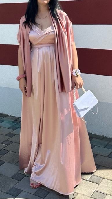 Uz haljinu prodajem i šal u istoj boji za preko ramena u crkvi ili kao dodatak. Oboje plaćeno 80 eura u Stil butiku.