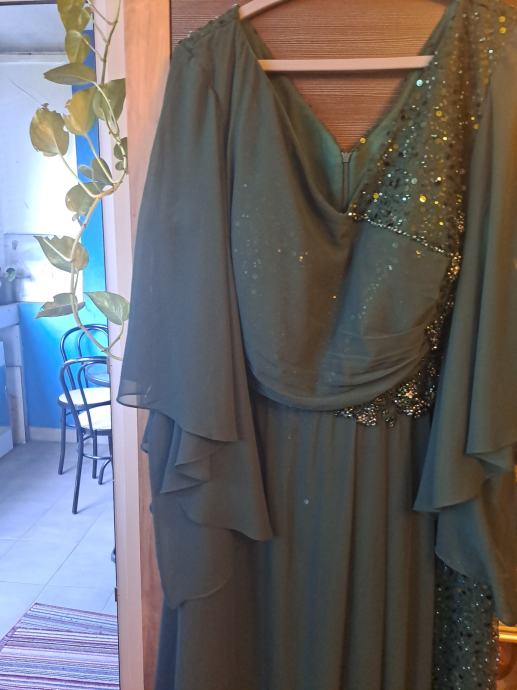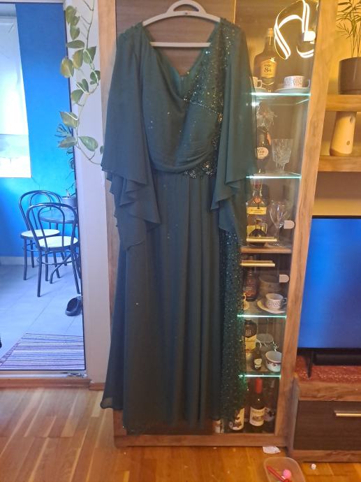 HALJINA JEDNOM NOŠENA PLAĆENA 290 EURA U ZAGREBU OBIM STRUKA 110 DO 115 CM OPSEG GRUDI 120 DO 130 CM DUZINA OKO 145 CM MOZE SE NOSITI BEZ GRUDNJAKA POSTO IMA UMETKE KEMIJSKI ČISTA KAO NOVA KUPLJENA PRIJE MJESEC DANA CIJENA SE MOŽE DOGOVORITI