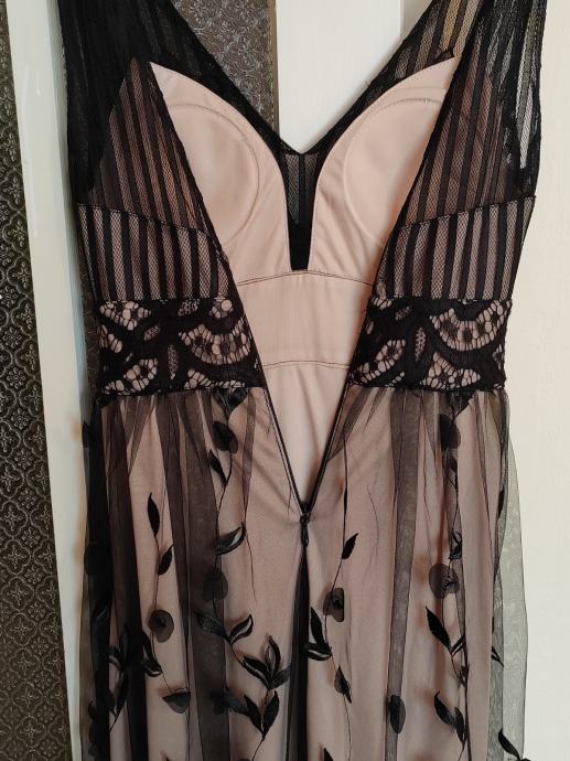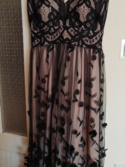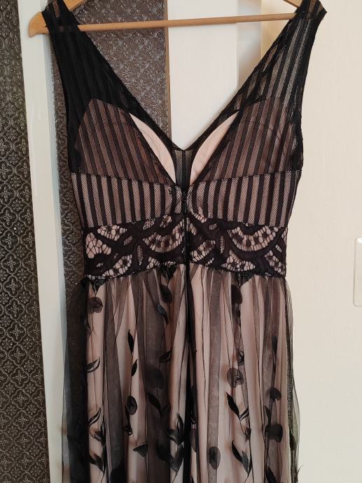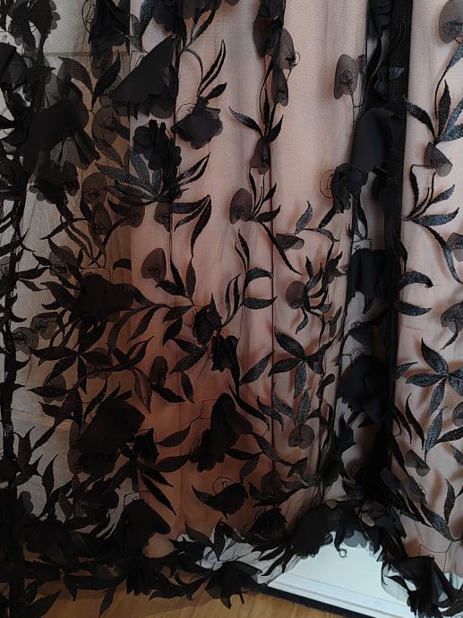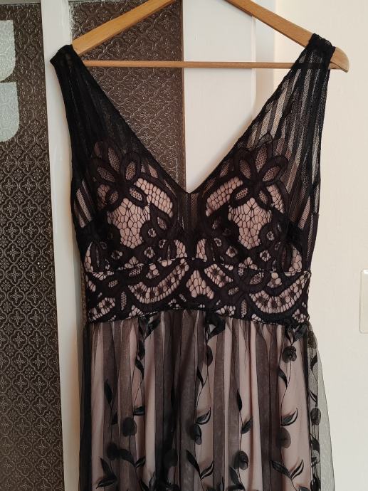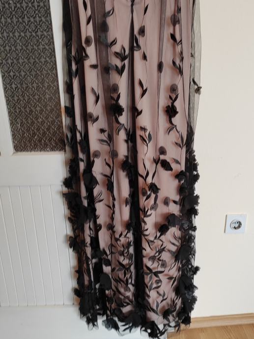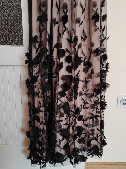 Svečana haljina, nošena jednom. Može se po potrebi skratiti, veličina haljine M. Umetci za grudi, ugodna, lepršava i zbilja, osim što privlači pozornost i dok samo visi negdje na vješalici, osjećate se lijepo pa makar taj dan bio nikakav i sve išlo niz'brdo :D