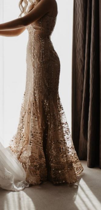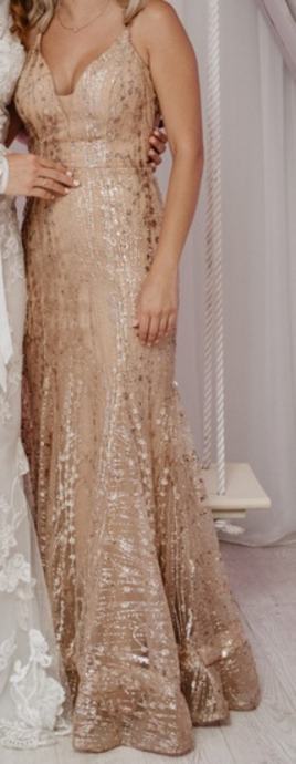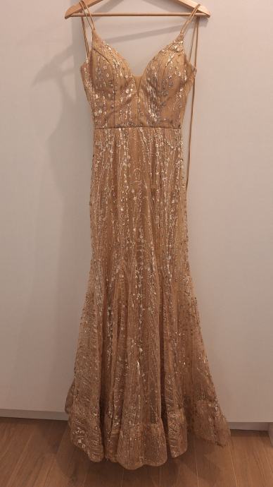 Prodajem svečanu zlatnu haljinu, veličina XS (odgovara i S/XS). Nošena je samo jednom, za svadbu.