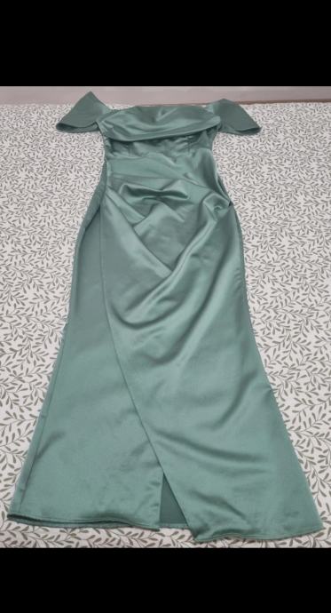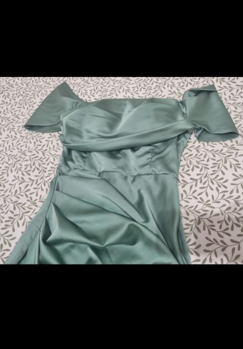 Nošena jednom na dan vjenčanja. Očuvana. Veličina odgovara 38/M, iako na haljini piše 42. Haljina ima grudnjak u sebi. Za ručno pranje. Duga je do poda, nabrano na trbuhu. Boja menta.