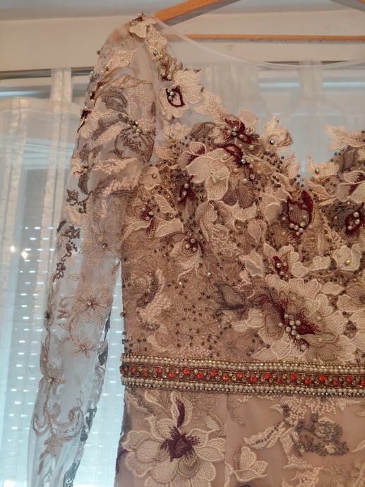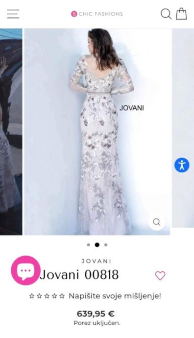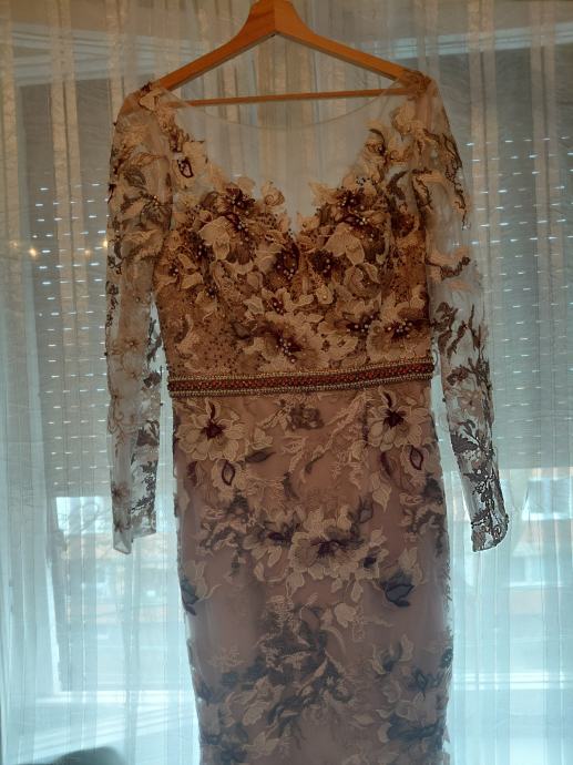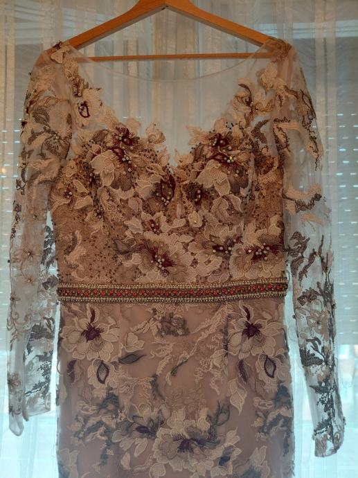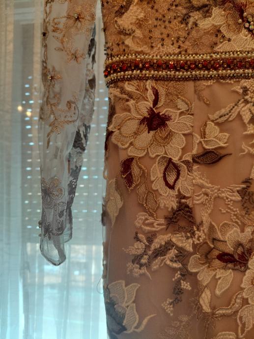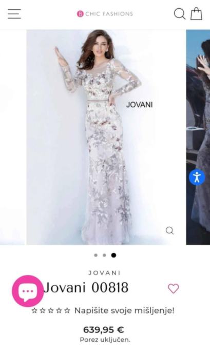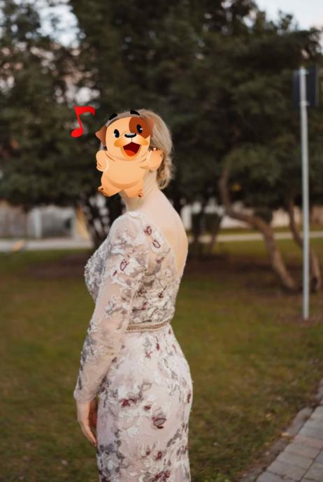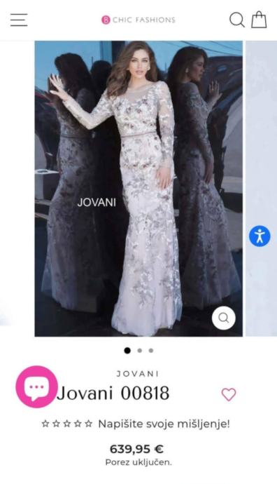Ova haljina mi je donijela bezbroj komplimenata, a sada je vrijeme da usreći neku drugu damu. Jovani dizajn koji savršeno spaja romantiku i luksuz. Dugi rukavi od finog tila daju joj dozu profinjenosti, dok kristalni pojas stvara predivnu siluetu i 3D cvjetići
