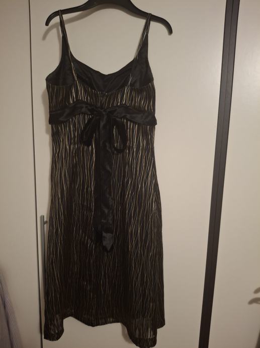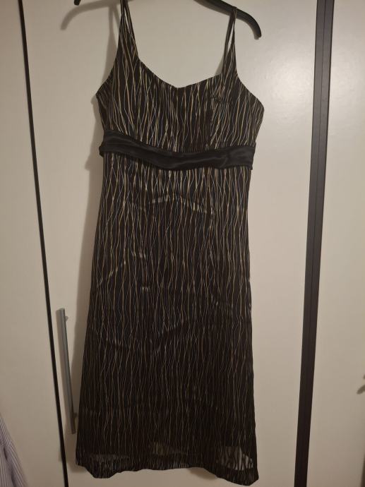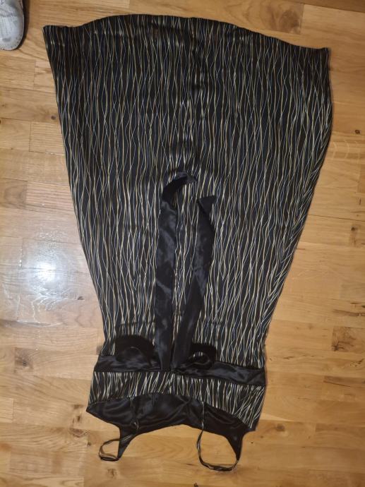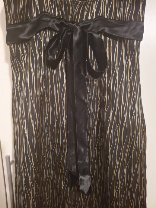Prodajem svečanu haljinu, očuvanu. Crnu sa zlatnim i srebrnim crtama i mašnom otraga. Haljina je nošena u jednoj prigodi! Veličina je 38.