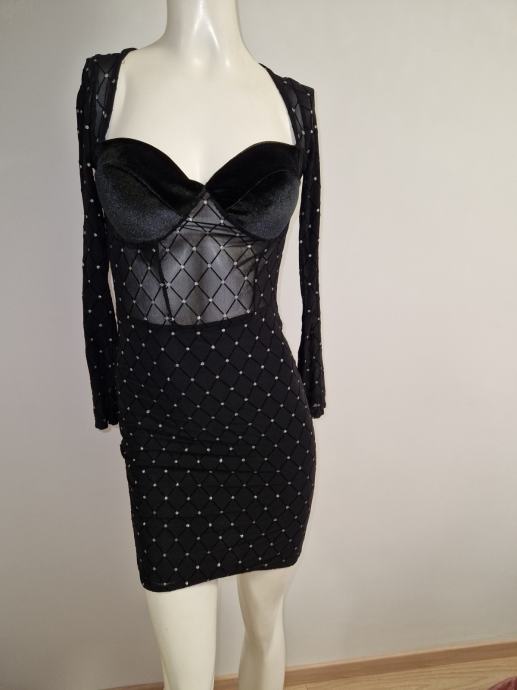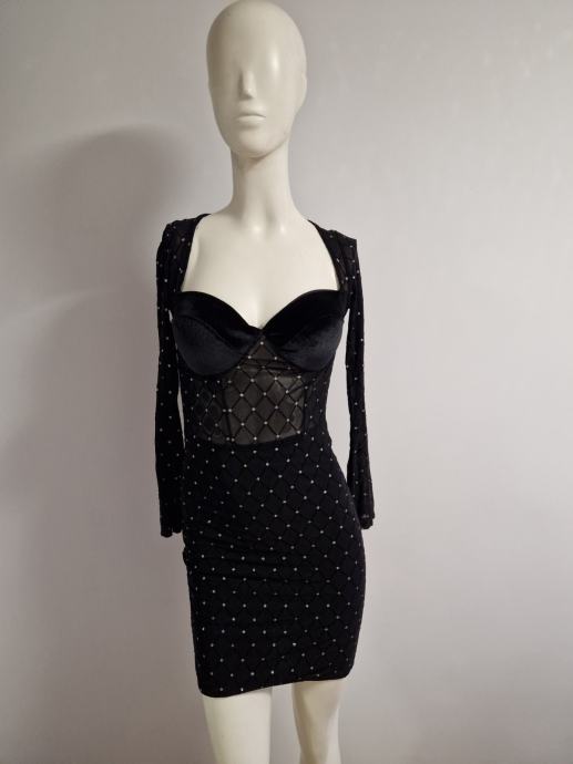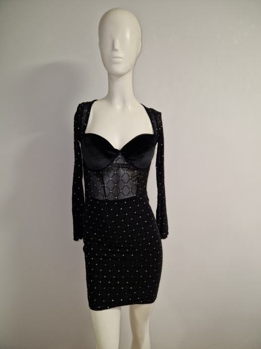 Svečana nova, haljina s podstavljenim košaricama, na dijelovima prozirna i s šljokicama.