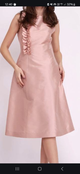 Prodajem svecanu haljinu vel.42 ( od 38 do 42 ), udobna, siroka, 100% svila, prljavo roze boje sa laganim sjajem.