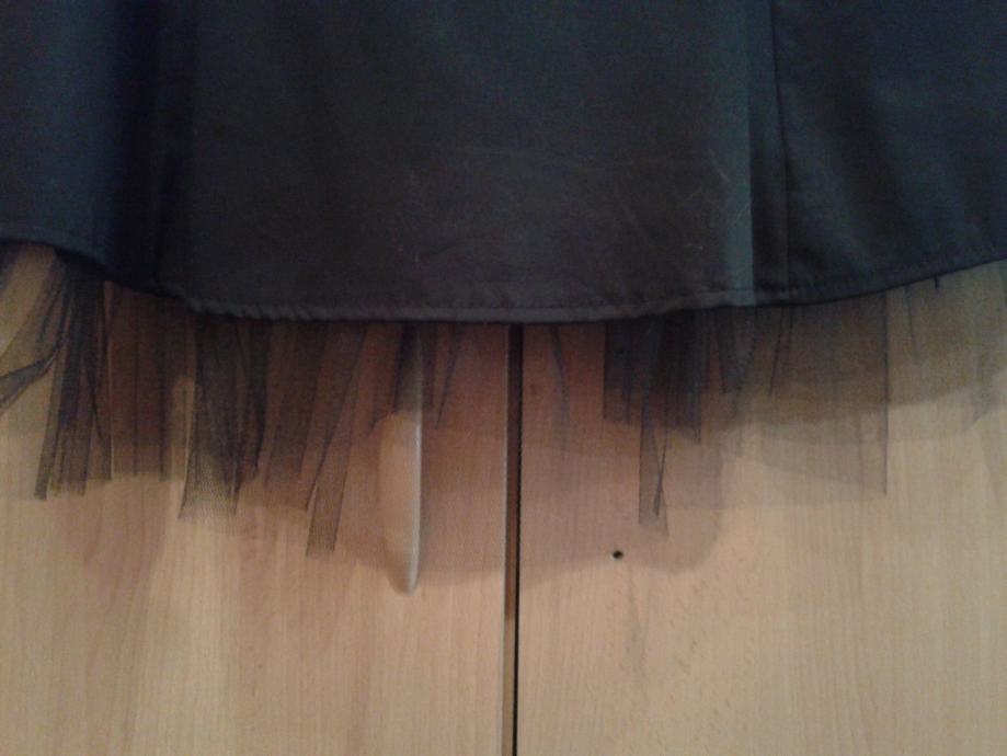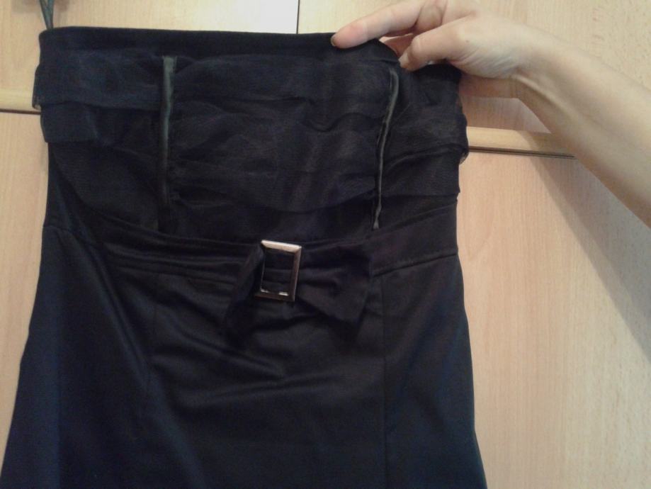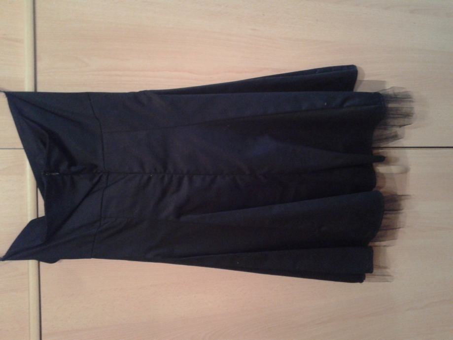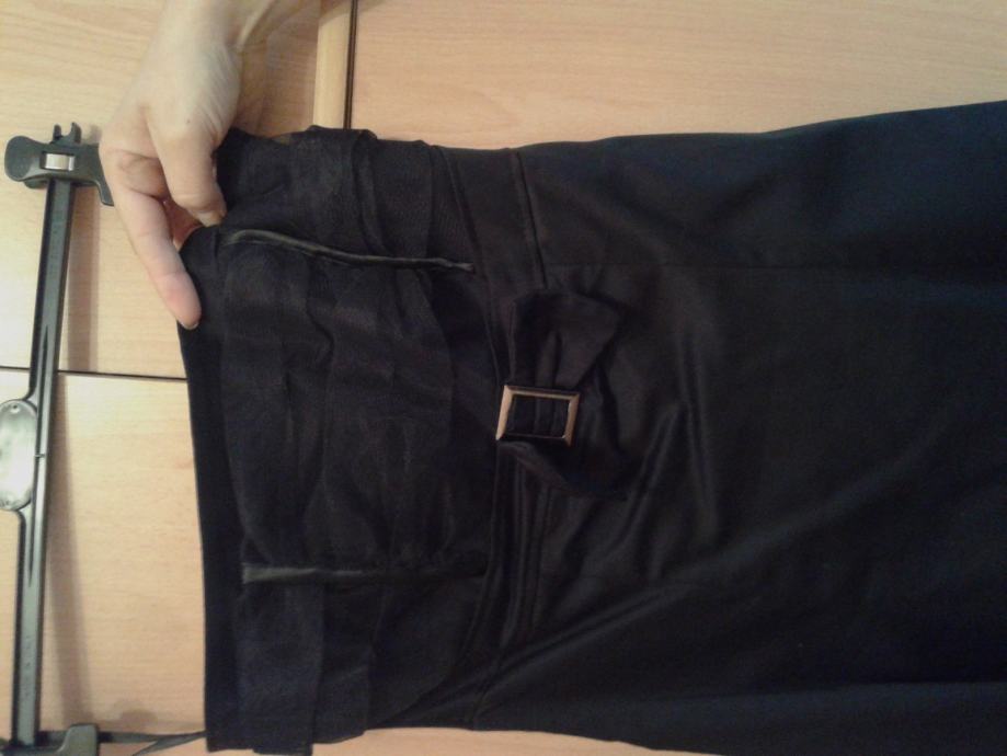 Prodajem novu crnu haljinu vel.38. Dužina malo iznad koljena, sa tilom uz rub. Zatvarač na leđima.