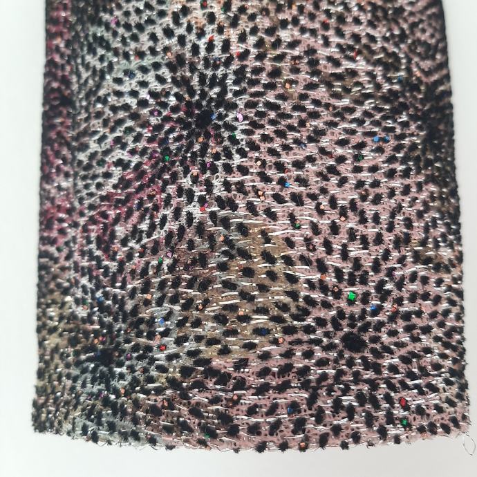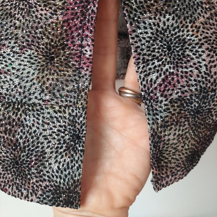 iznimna, u materijalu su cvjetovi od crnog pliša a sve ostalo je niz šljokica, materijal je Armani a haljina je rad kreatorice Grete Gudelj za haljinu nakon ponoći, posebna i nesvakidašnja, materijal je spektakularan, u noj ćete niti zvijezda večeri, osim para sexy štikli ništa vam više ne treba, kopčanje skrivenim zipom uzduž sredine leđa