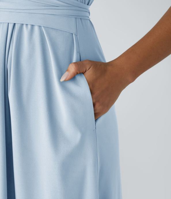 Prodajem dvije nove ne nošebe svečane haljine (svijetlo plava i koraljna boja) u L veličini, zahvalnog kroja koji naglašava deklote i sužava struk. Dužina ispod koljena, kao na slikama.