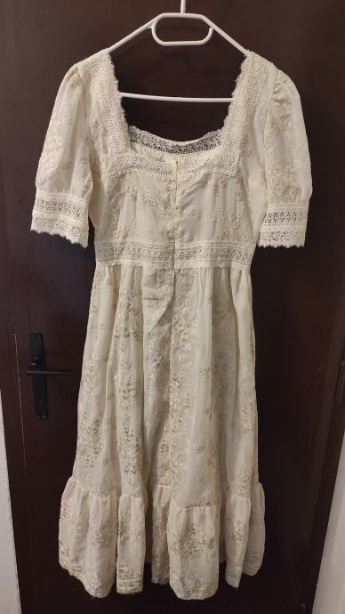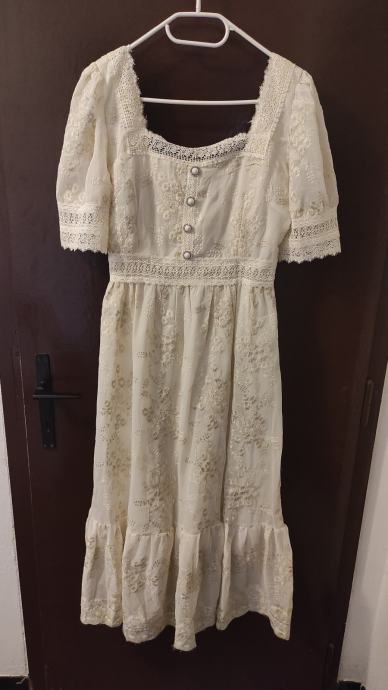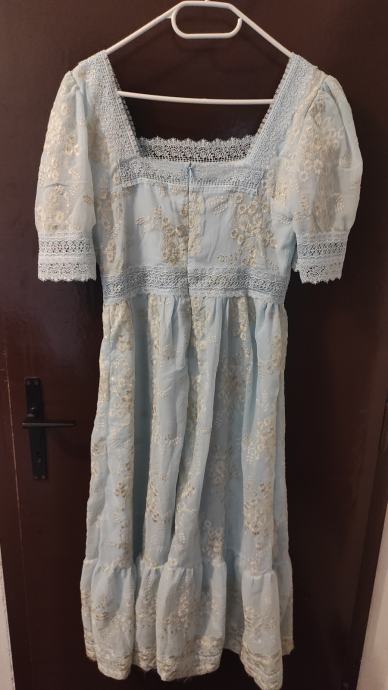 Prodajem nenošene svečane haljine sa slika. Imaju etiketu na kojoj piše L, ali zapravo bi po europskim mjerama bile S ili manji M. Širina poprsja je 86 cm, struka 72 cm i duljina je ispod koljena. Preuzimanje moguće u Samoboru ili Zagrebu. Slanje tiskom po vidljivoj uplati na račun. Cijena jedne haljine je 33 eura, 60 za obje.