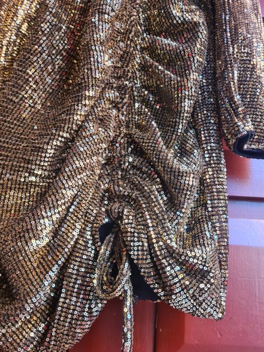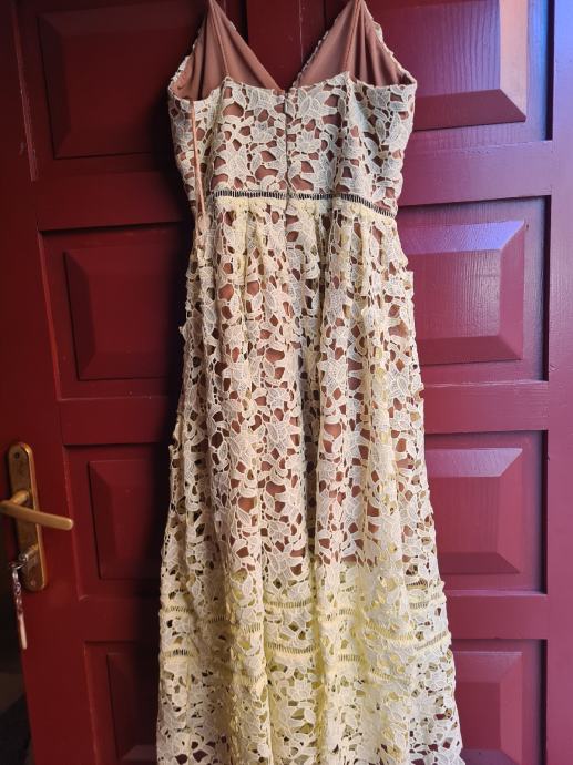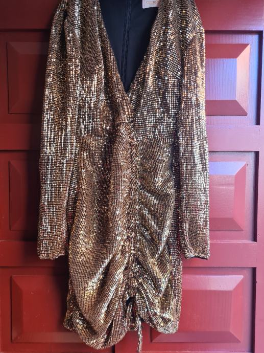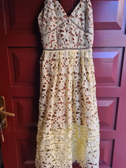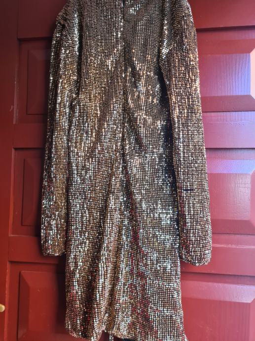 Dobra žuta haljina jako kvalitetna čipkana S vel i šljokicava sa dugim rukavima S manji M. I S,zadnja tigrasta L