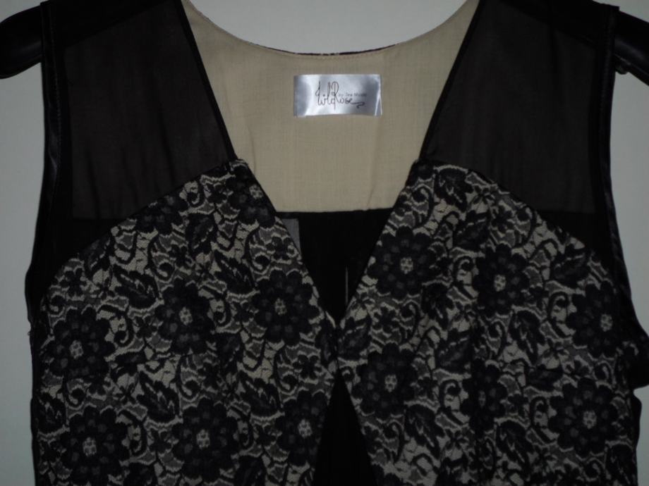 U donjem dijelu crna pamučna tkanina na koju lepršavo pada prozirna lagana viskoza.