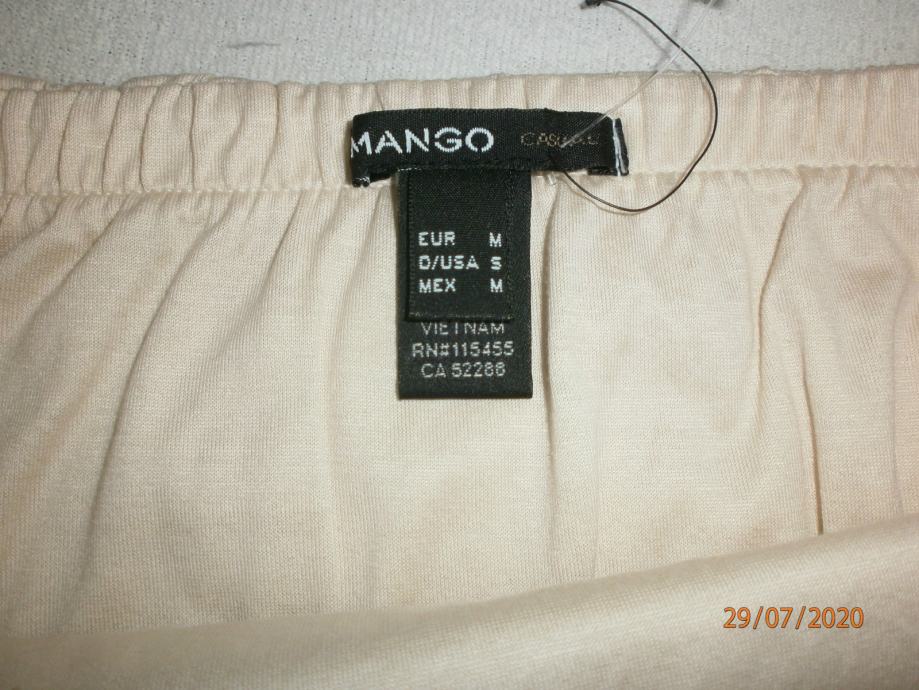 Veličina: Deklarirana M, ali može i S. Rastezljiva, ima gumu u struku i laganu gumu na vrhu.