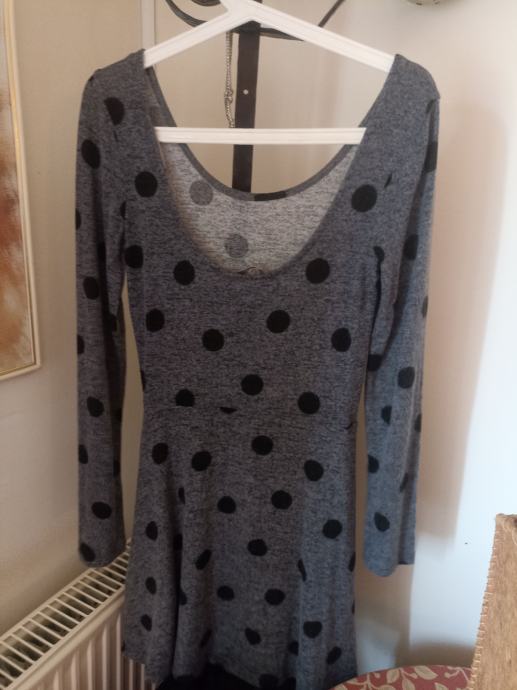 NOVA TOČKASTA HALJINA TUNIKA SIVO S CRNIM KRUGOVIMA TUFNAMA S 36 38