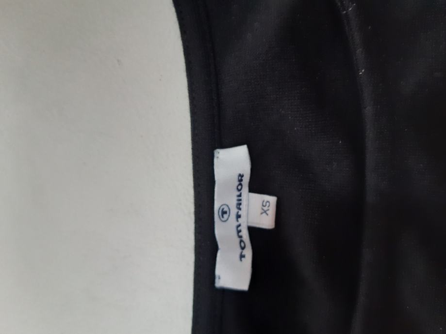 TOM TAILOR crna uska haljina bez rukava sa sivim printom. Vel. XS. Sirina prsa, prednja strana: 42 cm, duzina: 88 cm.