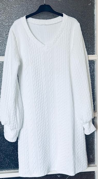 Bijela toplija haljina dužine 94 cm, šitine u prsima 100 cm.