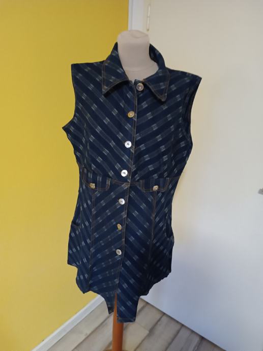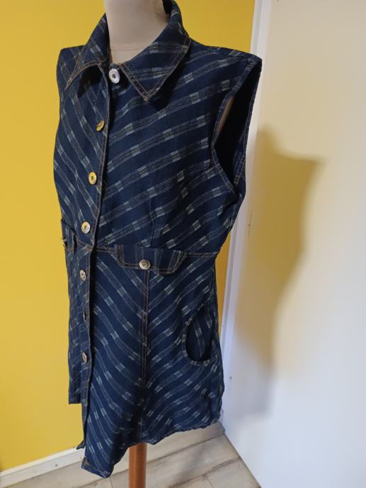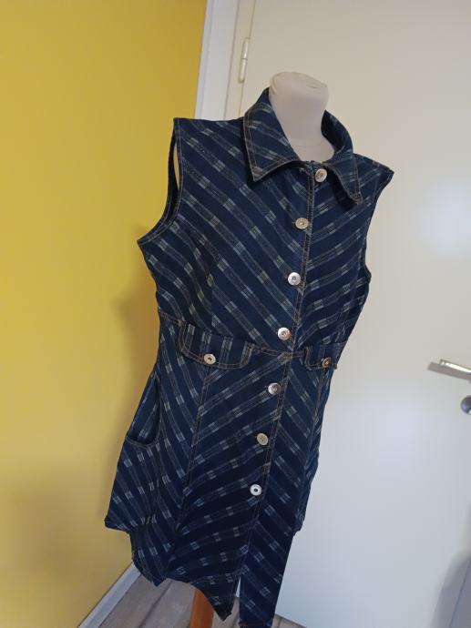 Vrlo lijepa traper haljina sa srebrnim nitima. Atraktivna i ženstvena. Na prednjem dijelu dva džepa.